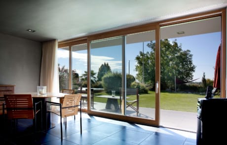 - Innen sorgt Holz für eine warme Atmosphäre, außen schützt Aluminium zuverlässig vor Witterung und UV-Strahlung