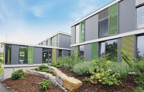 Unsere EHRET Schiebeläden erfüllen höchste Ansprüche an Ästhetik und Funktionalität. Sie eignen sich besonders gut für Gebäude mit großen Fensterflächen.