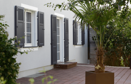 Unsere EHRET Klappläden aus Aluminium setzen Akzente und sorgen für ein geschmackvolles Erscheinungsbild im Einklang mit der Architektur.